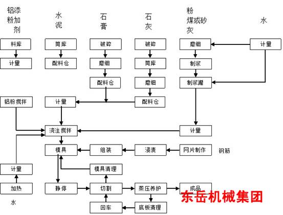 二、加氣混凝土砌塊設(shè)備工藝流程介紹
